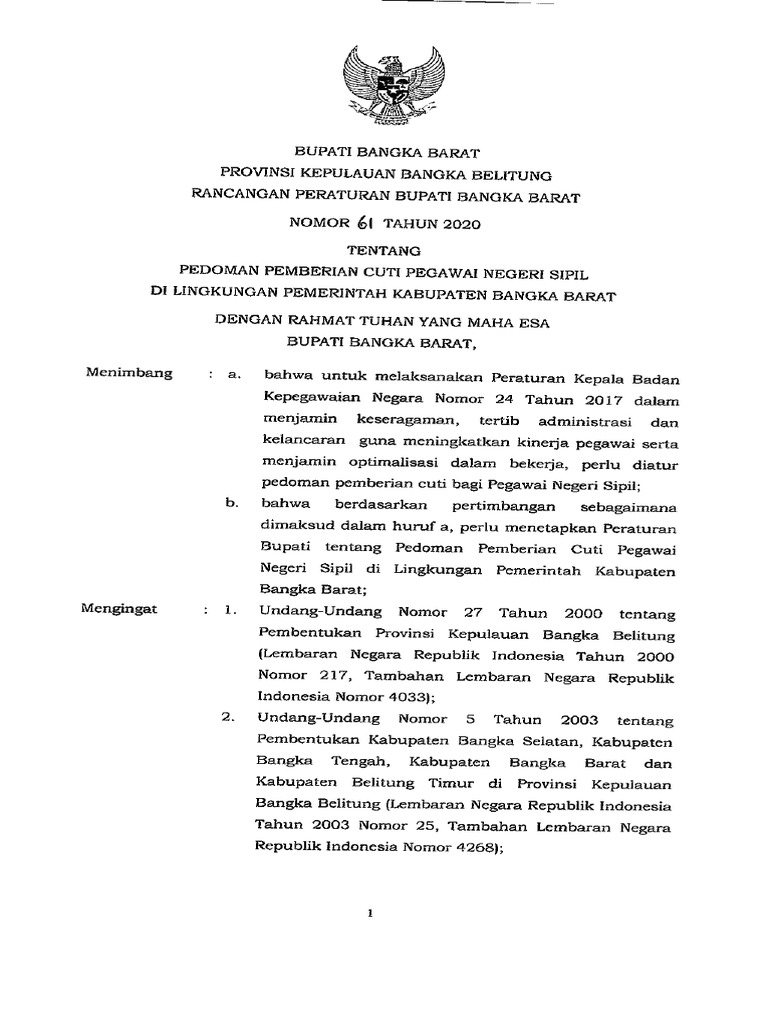 RANCANGAN PERATURAN BUPATI BANGKA BARAT