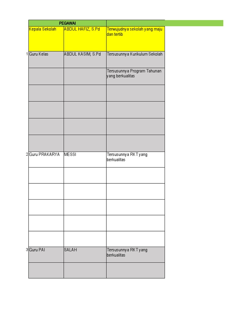 No. PIMPINAN YANG RENCANA HASIL KERJA ASPEK INDIKATOR KINERJA INDIVIDU TARGET BERDASAR BUKTI BERKELANJUTAN BERDASAR