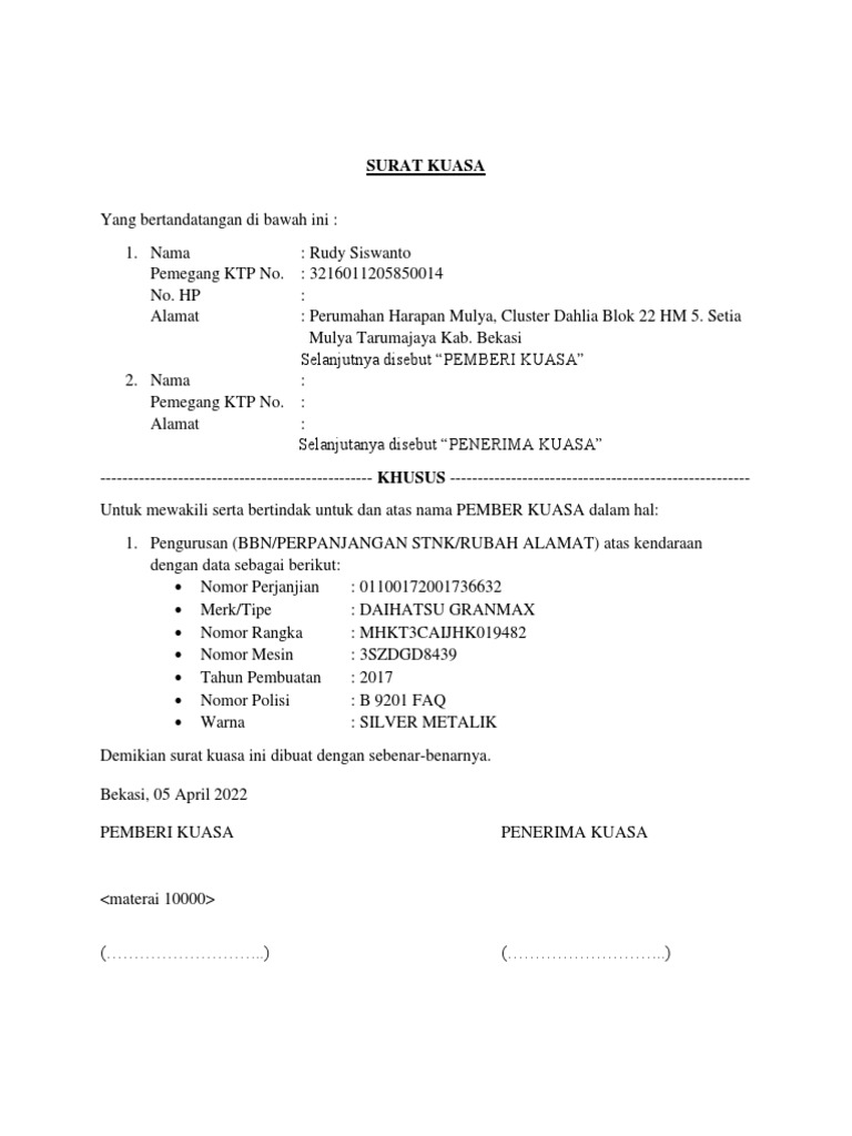 Demikian surat kuasa ini dibuat dengan sebenar-benarnya.