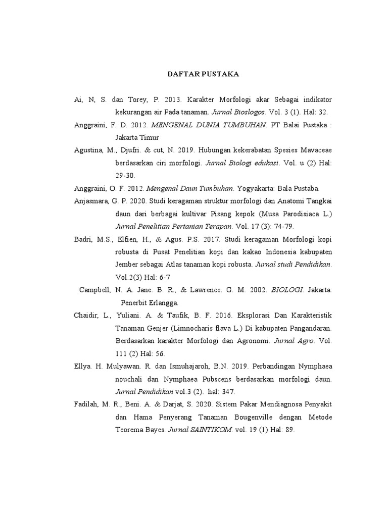 Anggraini, F. D. 2012. MENGENAL DUNIA TUMBUHAN. PT Balai Pustaka :