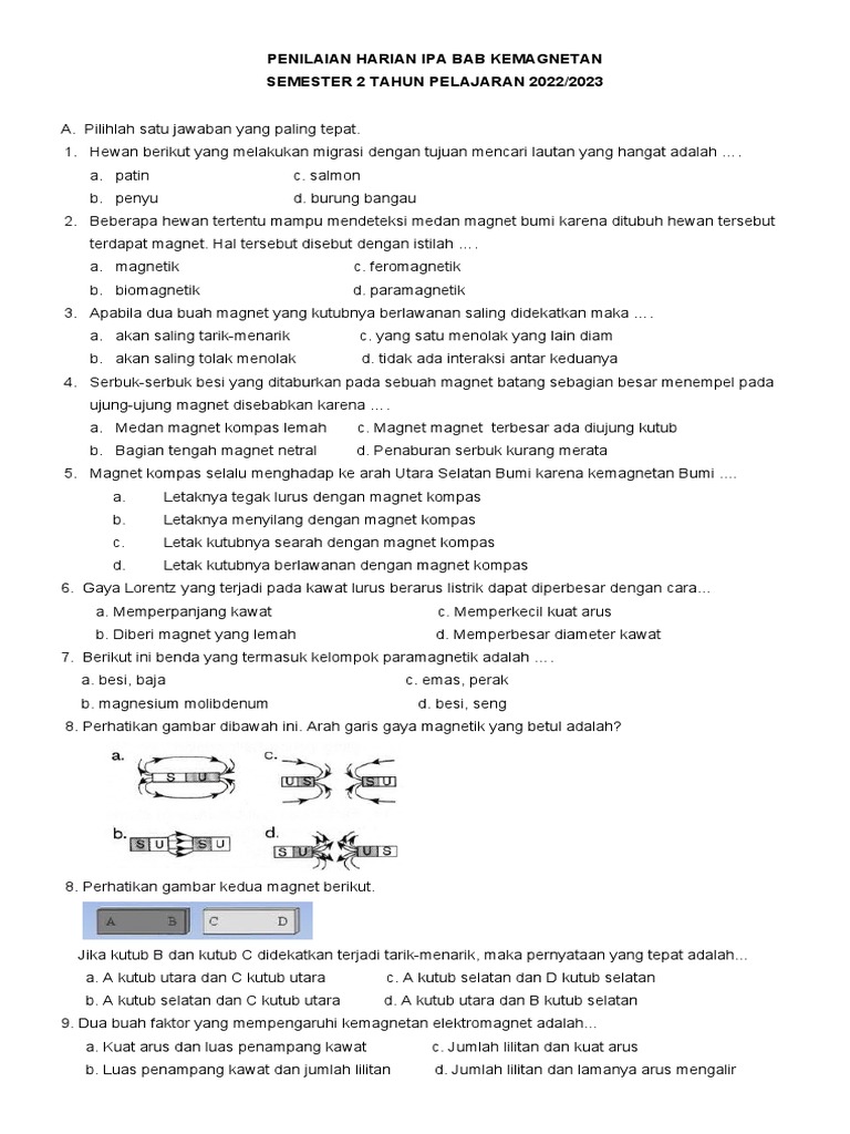 PENILAIAN HARIAN IPA BAB KEMAGNETAN