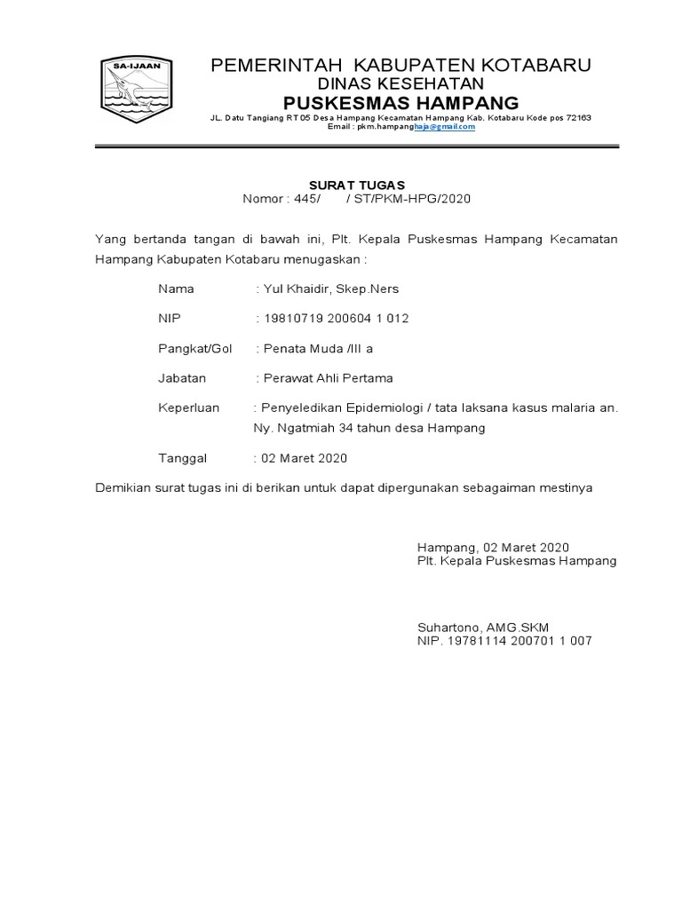 Demikian surat tugas ini di berikan untuk dapat dipergunakan sebagaiman mestinya