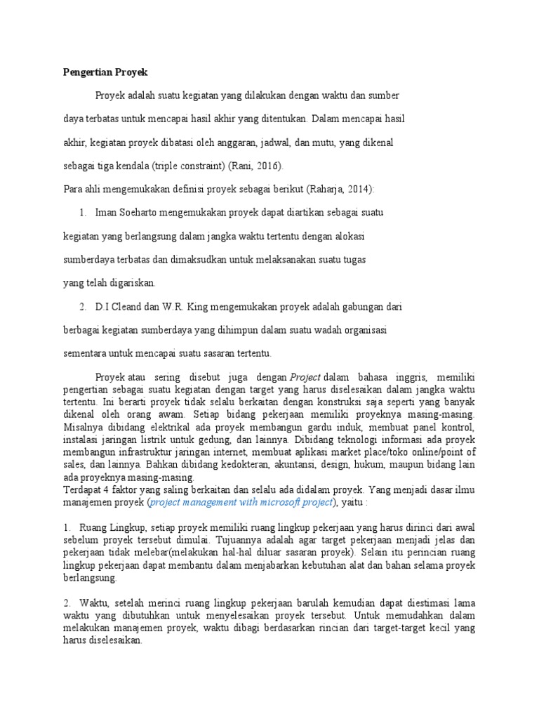 1. Iman Soeharto mengemukakan proyek dapat diartikan sebagai suatu