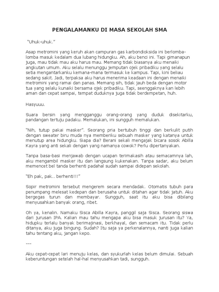 PENGALAMANKU DI MASA SEKOLAH SMA