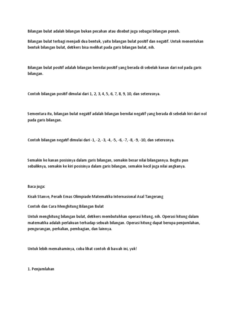 Apa itu bilangan bulat? Bilangan bulat adalah kumpulan atau himpunan yang nilainya bulat. Bilangan