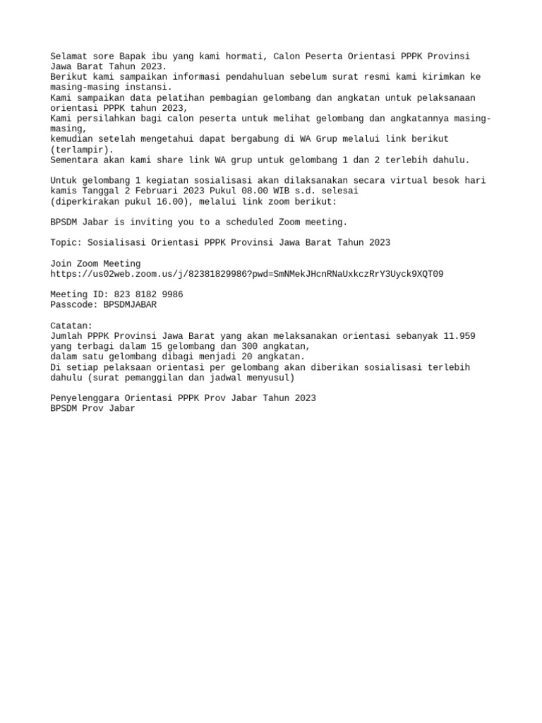 Selamat sore Bapak ibu yang kami hormati, Calon Peserta Orientasi PPPK Provinsi