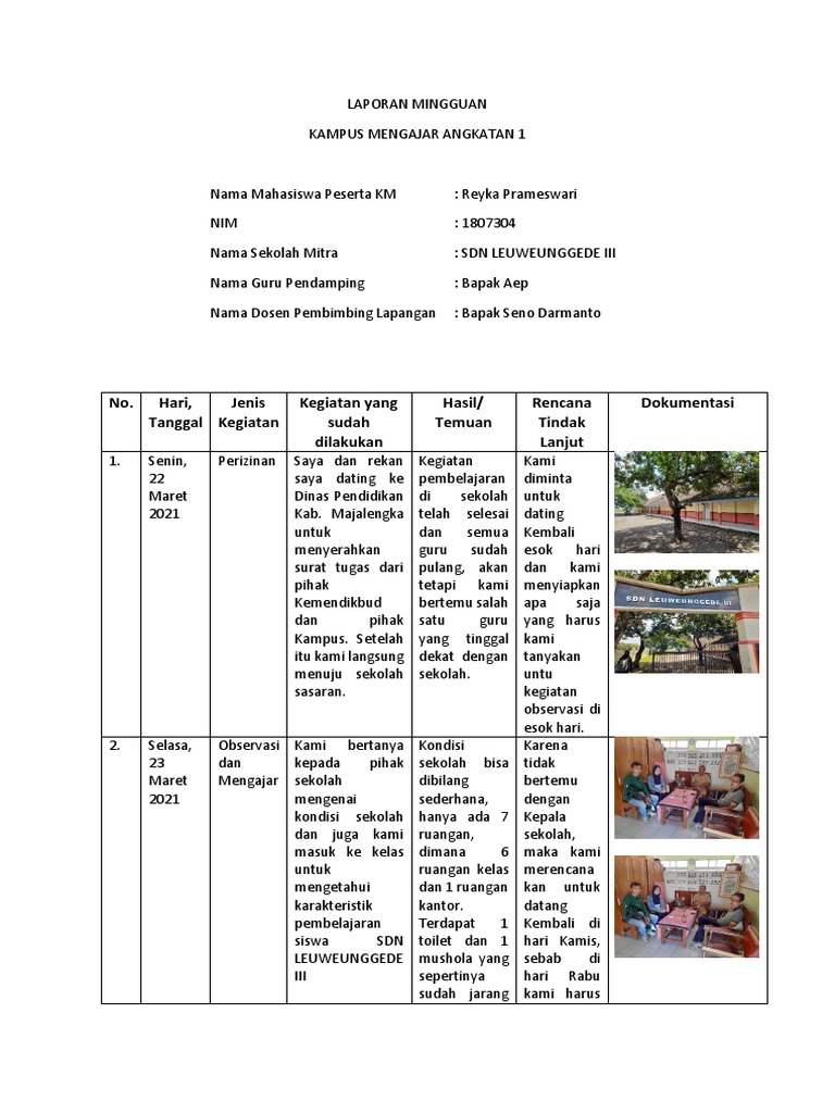 Nama Mahasiswa Peserta KM : Reyka Prameswari