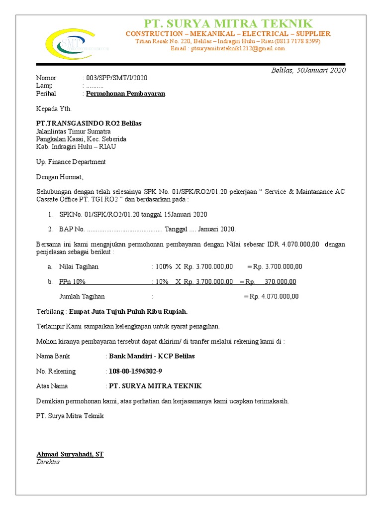 Permohonan Pembayaran PT Surya Mitra Teknik