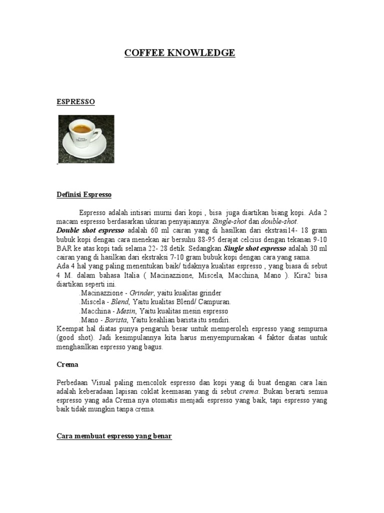 Double shot espresso adalah 60 ml cairan yang di hasilkan dari ekstrasi14- 18 gram