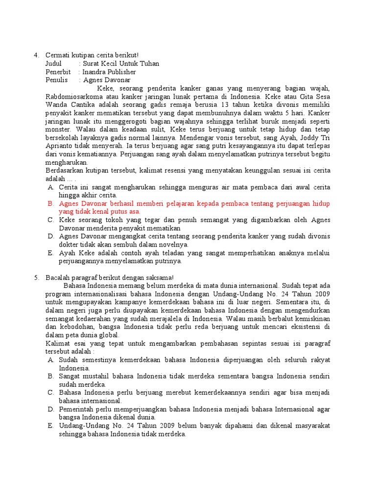 5. Bacalah paragraf berikut dengan saksama!