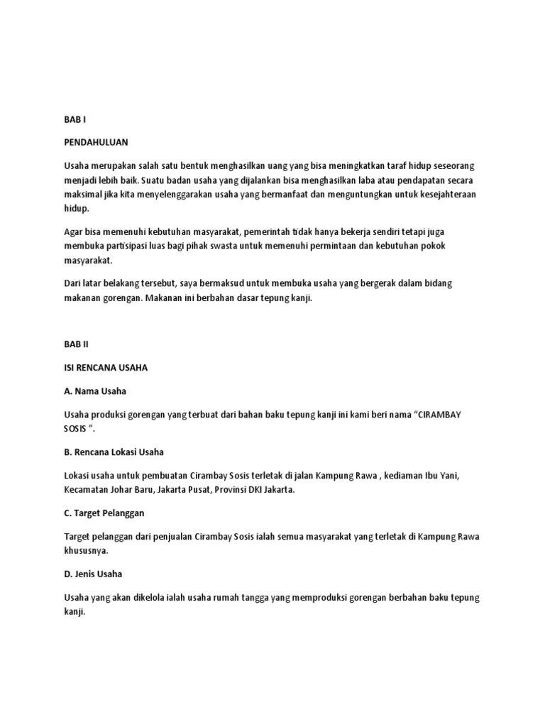 ISI RENCANA USAHA