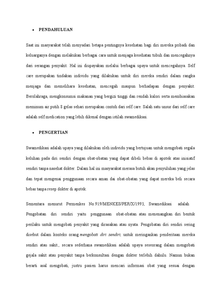 sendiri atau sakit., secara sederhana swamedikasi adalah upaya seseorang dalam mengobati