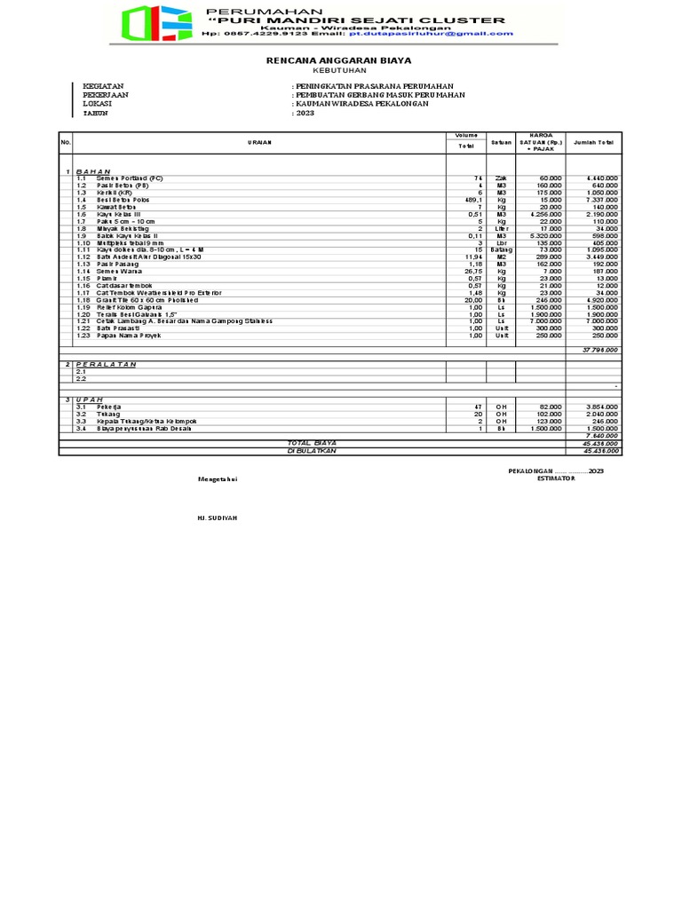RAB Pembuatan Gerbang Perumahan 2023