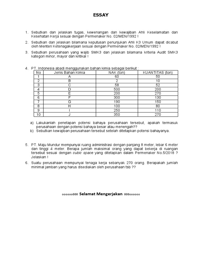 Kesehatan Kerja sesuai dengan Permenaker No. 02/MEN/1992 !