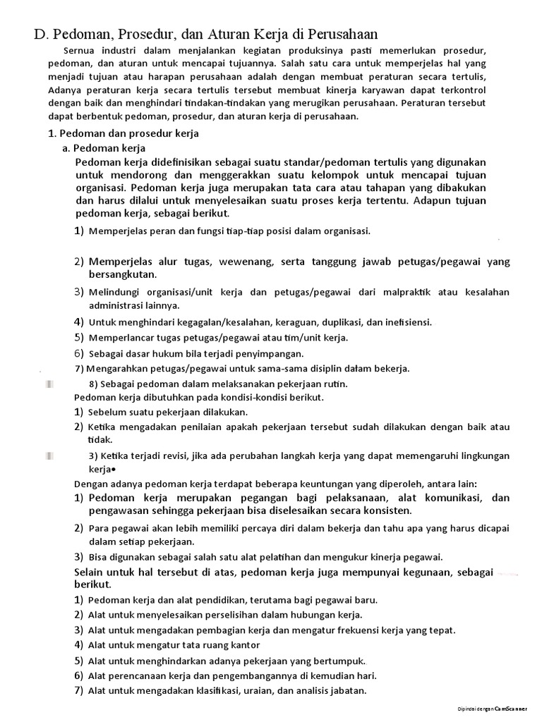 Dalam perusahaan mana pun pasti terdapat pedoman kerja, prosedür, aturan kerja,