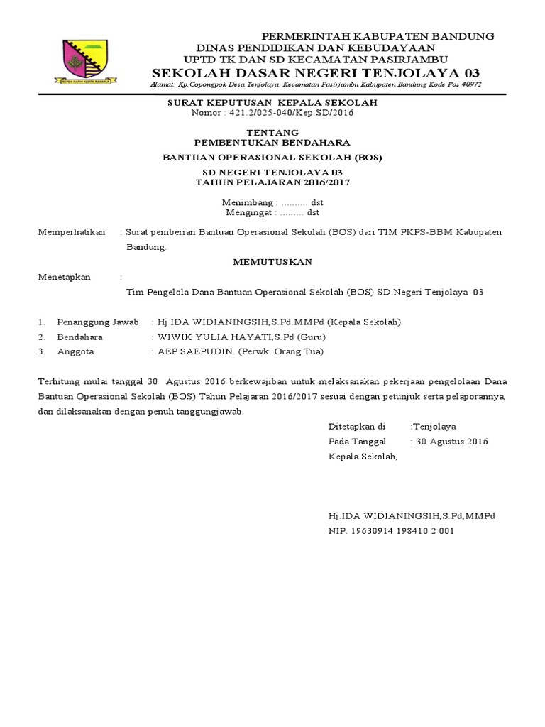 3. Bahwa agar Dana Bantuan Operasional Sekolah (BOS) pada SD Negeri Tenjolaya 03 dapat dikelola secara
