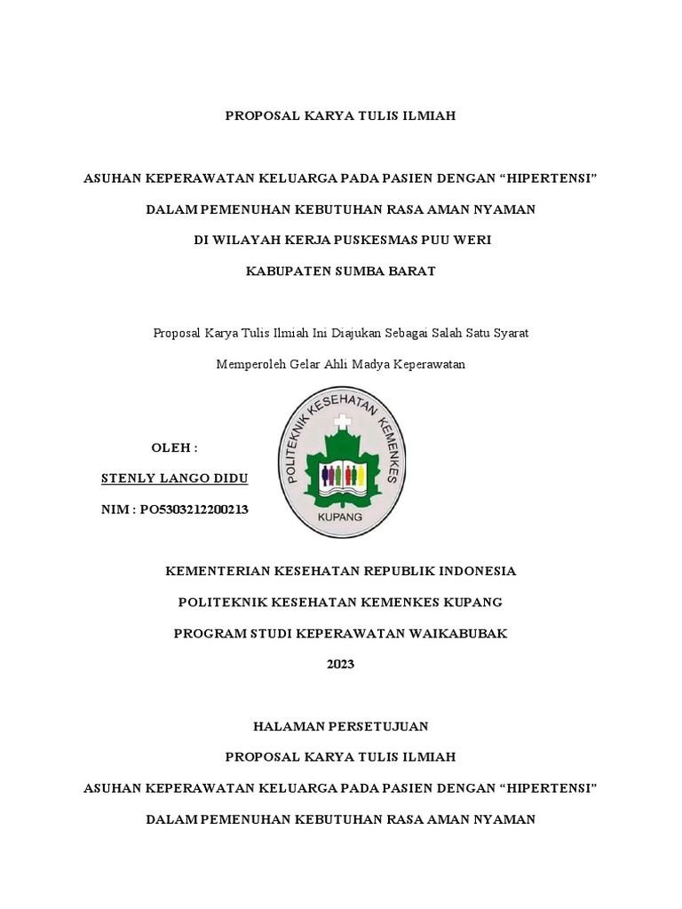 Telah Disetujui Untuk Diujikan Di Depan Dewan Penguji Proposal Karya Tulis Ilmiah