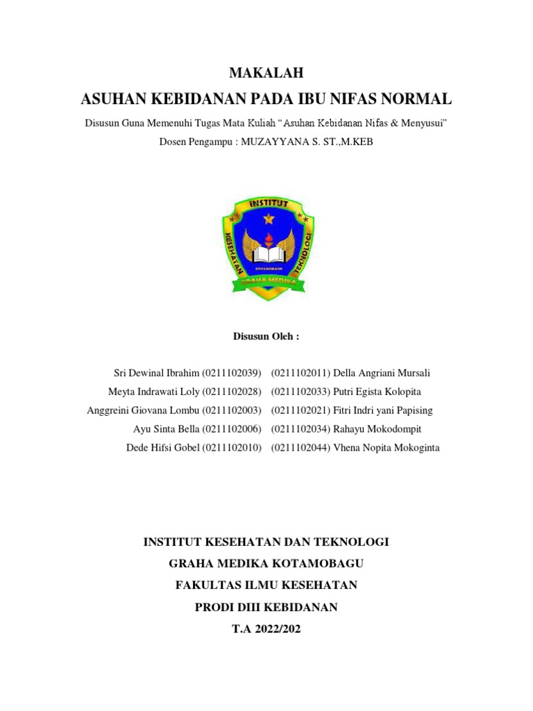 Disusun Guna Memenuhi Tugas Mata Kuliah “Asuhan Kebidanan Nifas & Menyusui”
