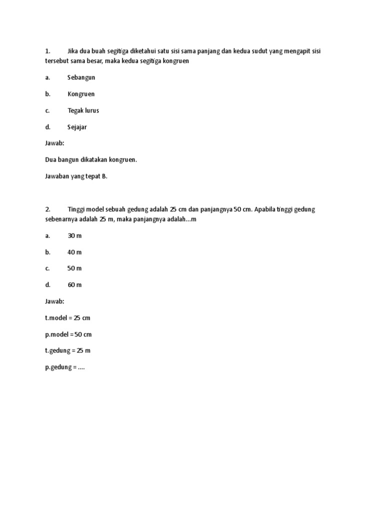 2. Tinggi model sebuah gedung adalah 25 cm dan panjangnya 50 cm. Apabila tinggi gedung