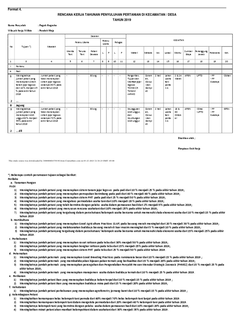 RENCANA KERJA TAHUNAN PENYULUHAN PERTANIAN DI KECAMATAN / DESA