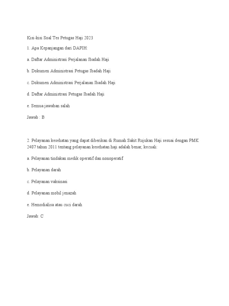 Kisi-kisi Soal Tes Petugas Haji 2023