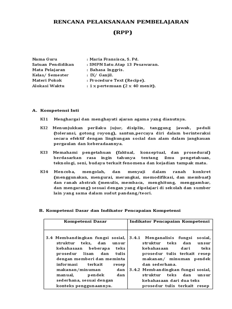 RENCANA PELAKSANAAN PEMBELAJARAN
