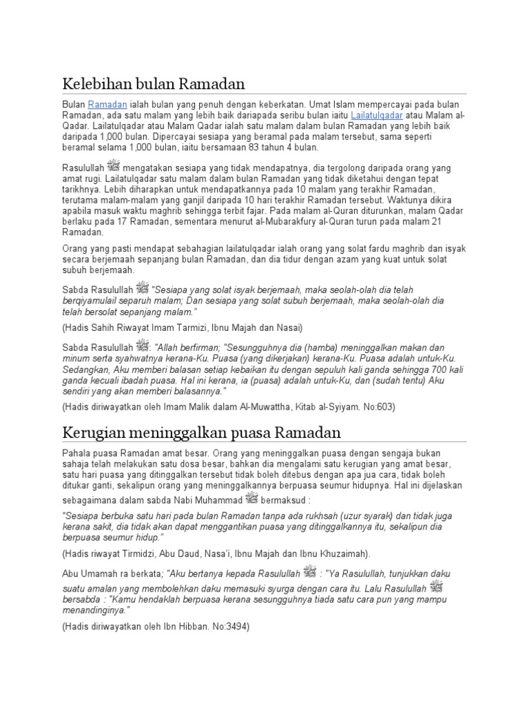 Pahala puasa Ramadan amat besar. Orang yang meninggalkan puasa dengan sengaja bukan