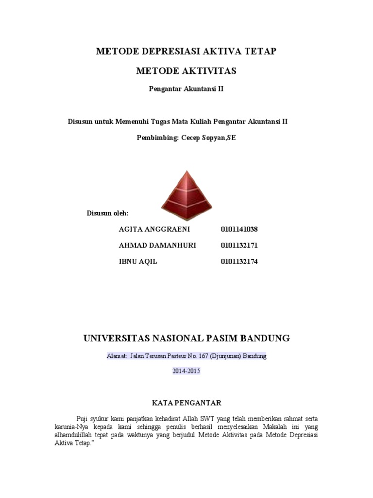 alhamdulillah tepat pada waktunya yang berjudul Metode Aktivitas pada Metode Depresiasi