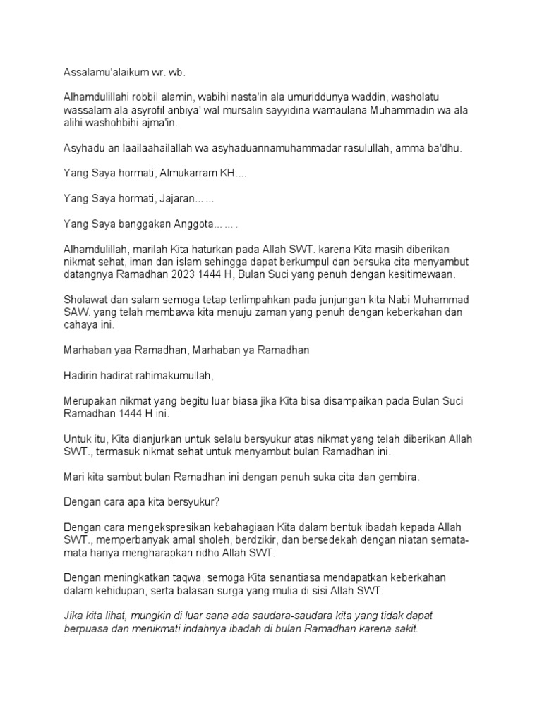 Selamat menjalankan ibadah puasa Ramadhan 1444 H, saya secara pribadi mohon