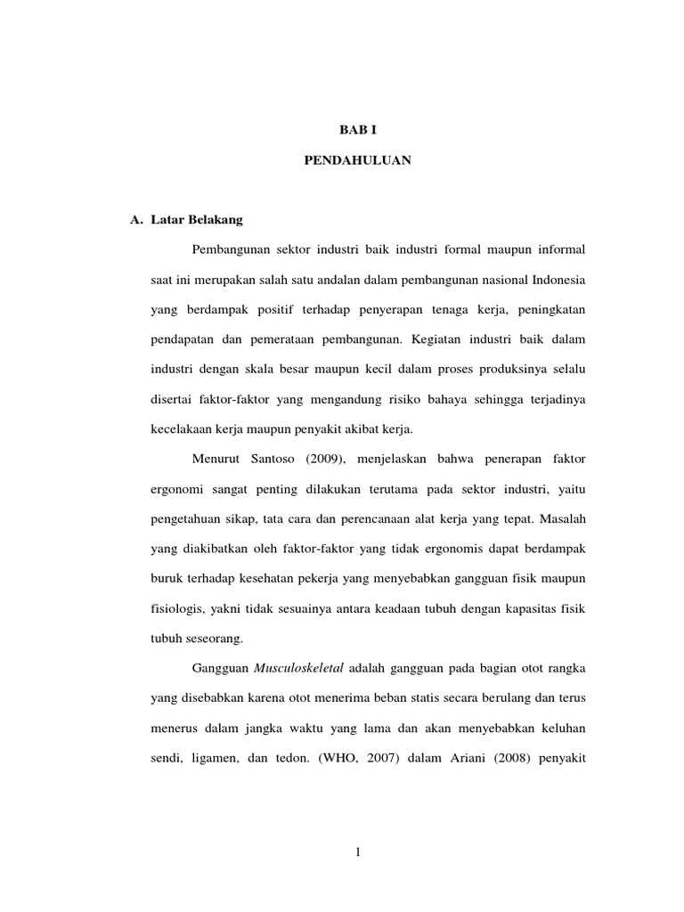 Musculoskeletal Disorders (MSDs) pada pekerja di industri