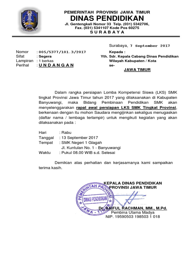 Lampiran 1 : Undangan Kepala Dinas Pendidikan Provinsi Jawa Timur