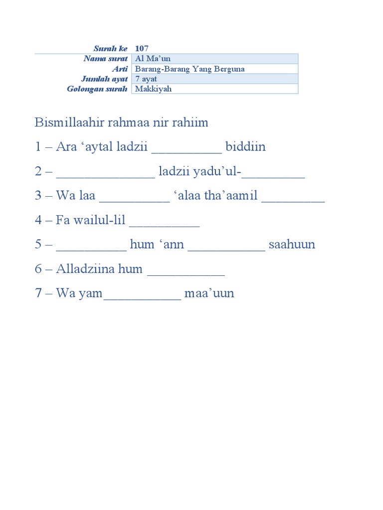 Nama surat Al Ma’un