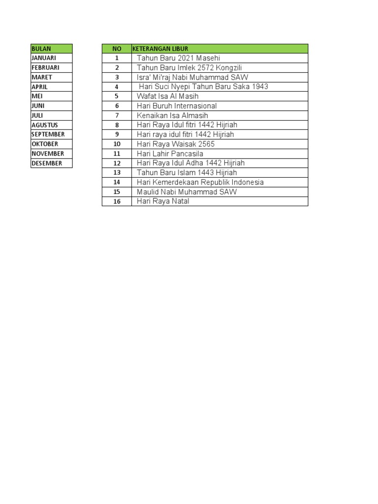 BULAN NO KETERANGAN LIBUR