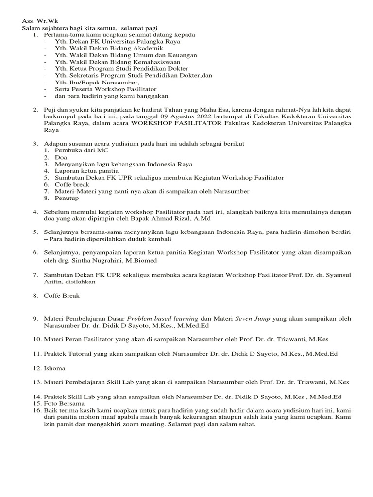 3. Adapun susunan acara yudisium pada hari ini adalah sebagai berikut