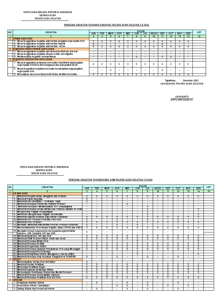 RENCANA KEGIATAN TAHUNAN BAG SDM POLRES ACEH SELATAN T.A 2022