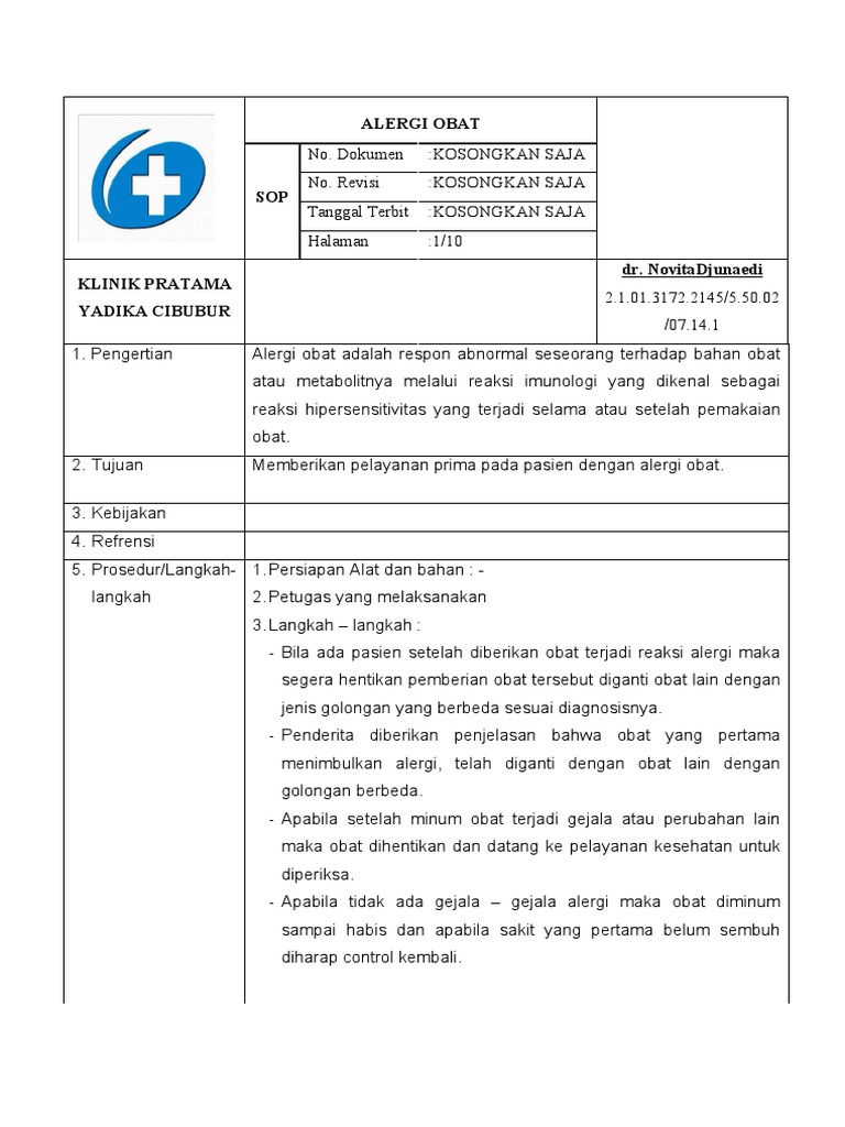 2. Tujuan Memberikan pelayanan prima pada pasien dengan alergi obat.