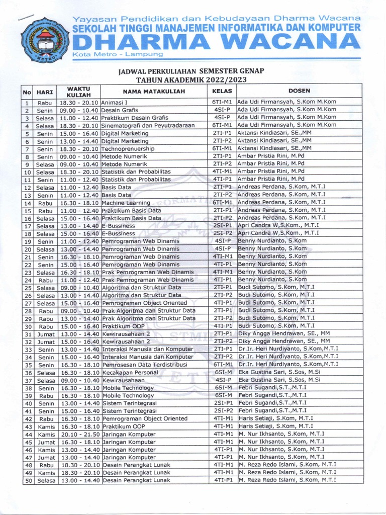 JADWAL PERKULIAHAN SEMESTER GENAP