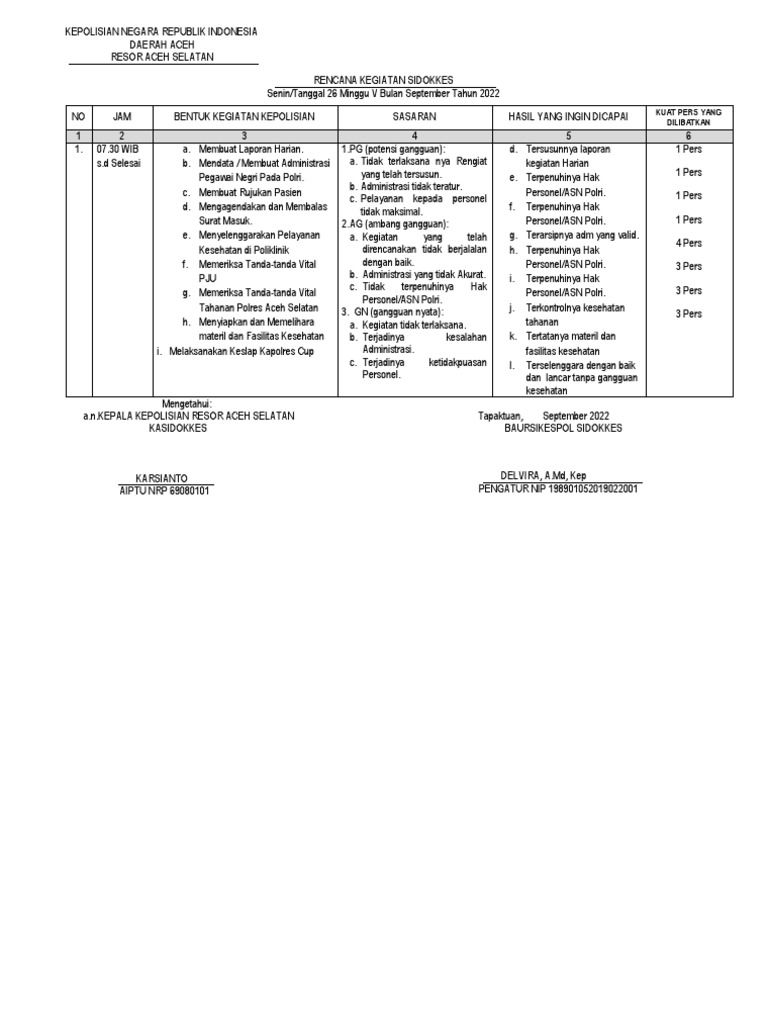 RENCANA KEGIATAN SIDOKKES