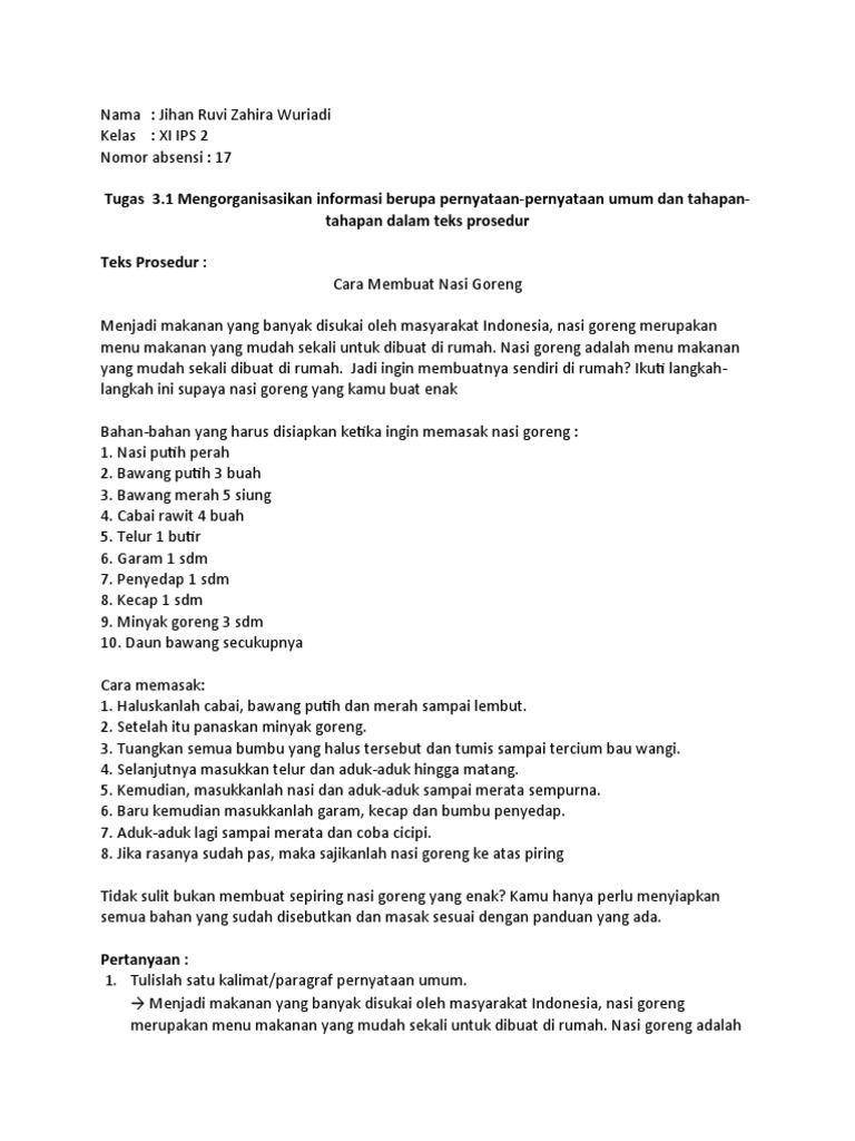 Tugas 3.1 Mengorganisasikan informasi berupa pernyataan-pernyataan umum dan tahapan-
