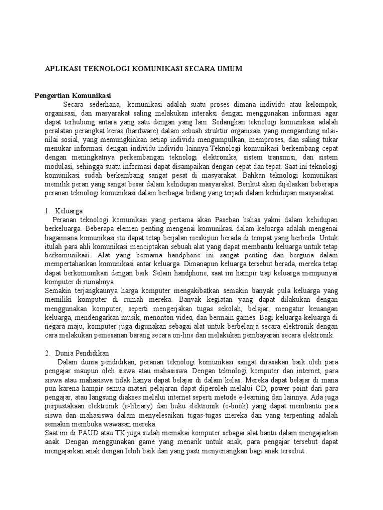 APLIKASI TEKNOLOGI KOMUNIKASI SECARA UMUM