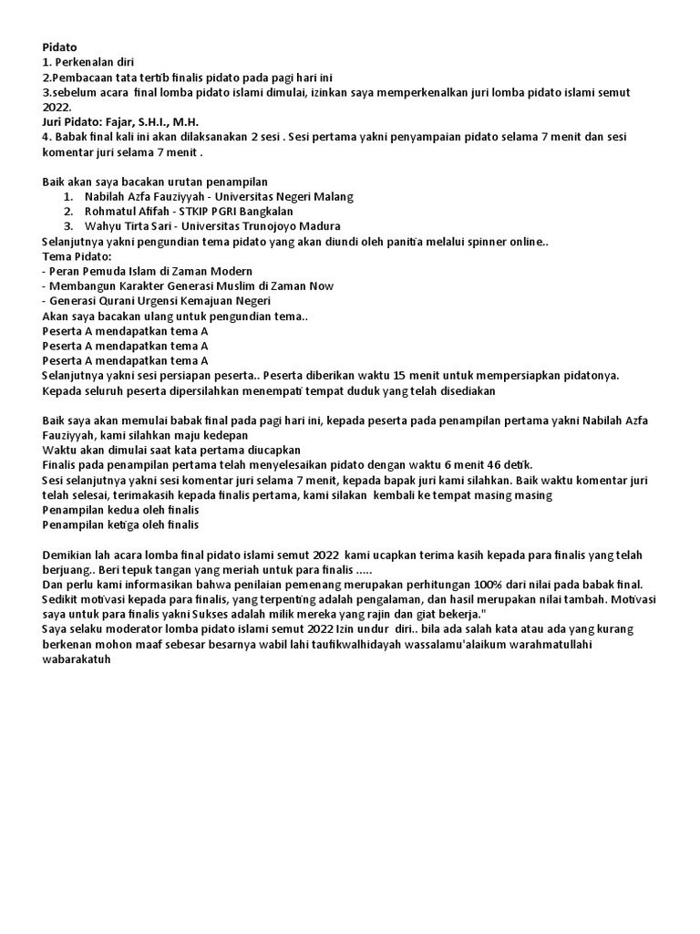 3.sebelum acara final lomba pidato islami dimulai, izinkan saya memperkenalkan juri lomba pidato islami semut