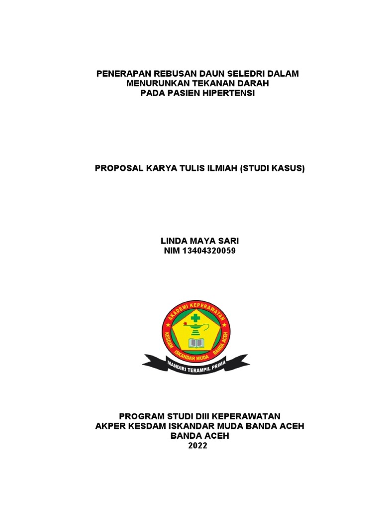Tulis Ilmiah ini dengan judul “Penerapan Rebusan Daun Seledri Dalam