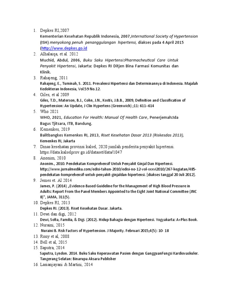Dewi, Sofia, Familia, & Digi. (2012). Hidup Bahagia dengan Hipertensi. Yogyakarta: A+Plus Book.
