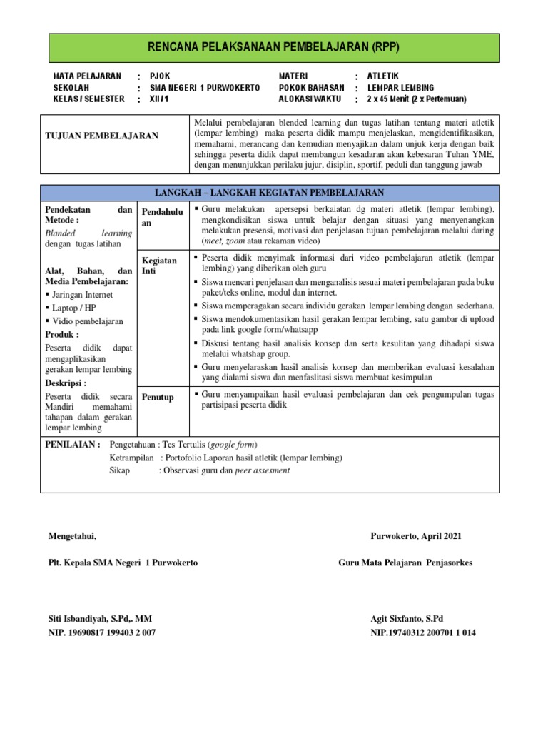 Melalui pembelajaran blended learning dan tugas latihan tentang materi atletik