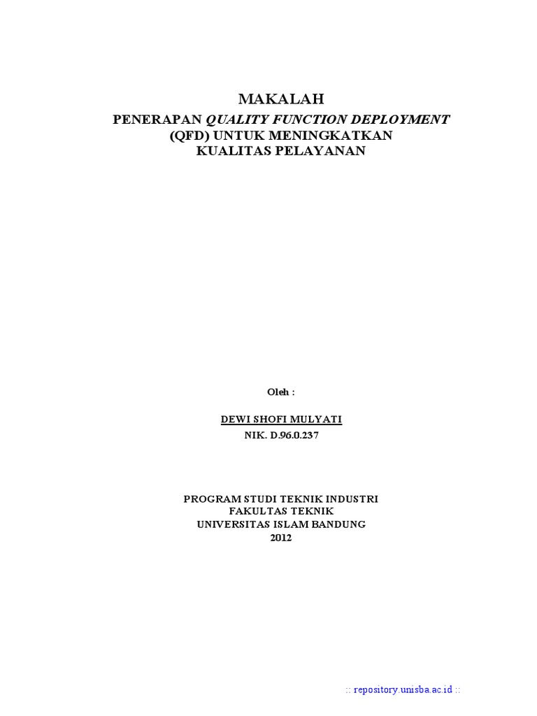 Function Deployment (QFD) Untuk Meningkatkan Kualitas Pelayanan”.