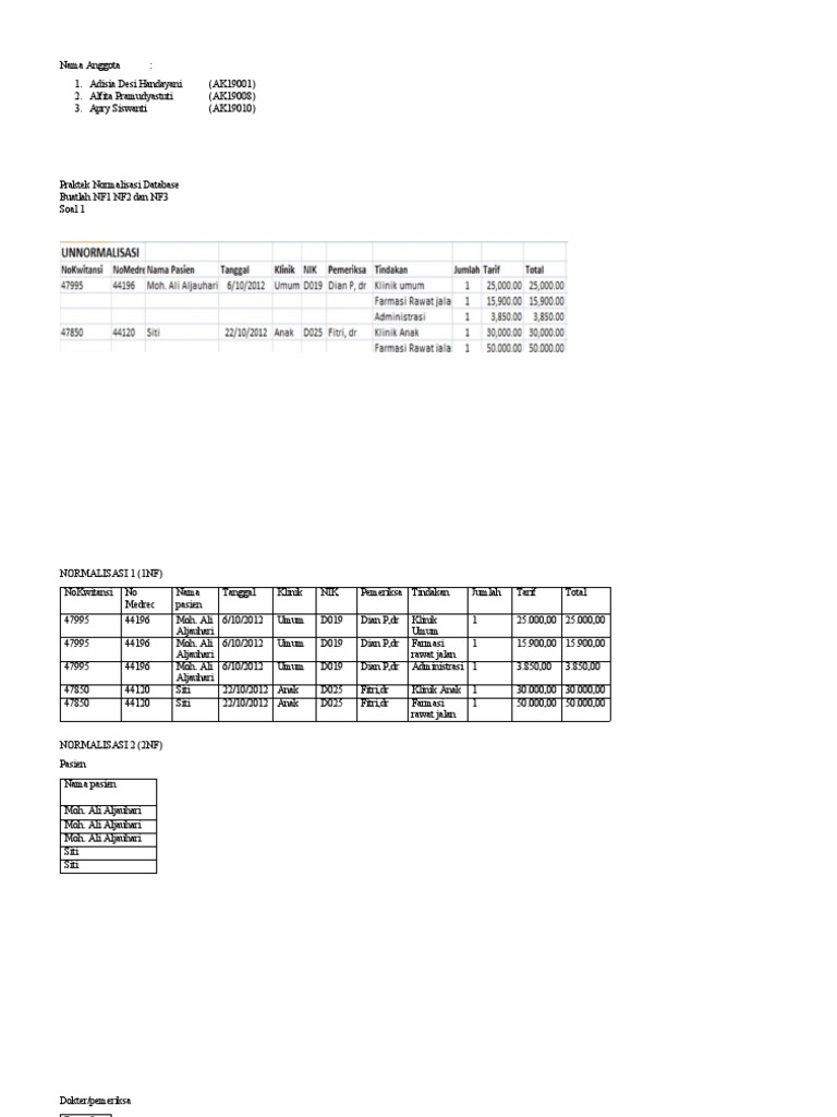 NoKwitansi No Nama Tanggal Klinik NIK Pemeriksa Tindakan Jumlah Tarif Total