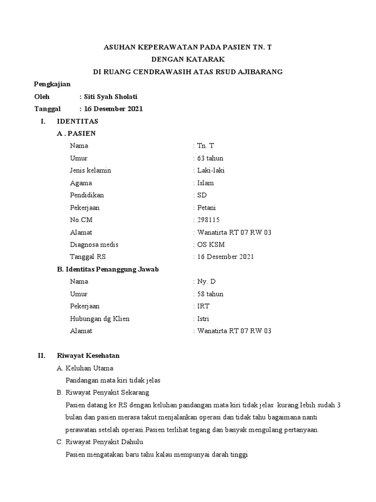 1 Jumat 17 Desember S: Pasien mengatakan operasi berjalan lancar tetapi mata kiri masih ditutup