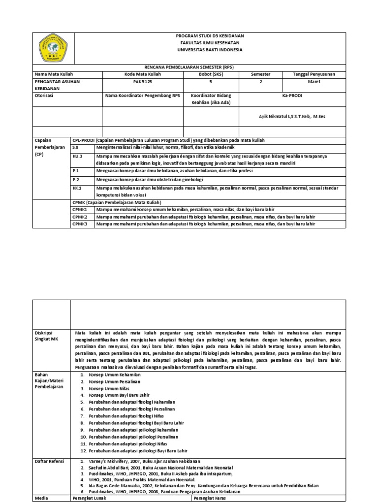 RENCANA PEMBELAJARAN SEMESTER (RPS)