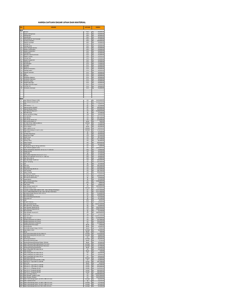 Harga Upah dan Material Konstruksi