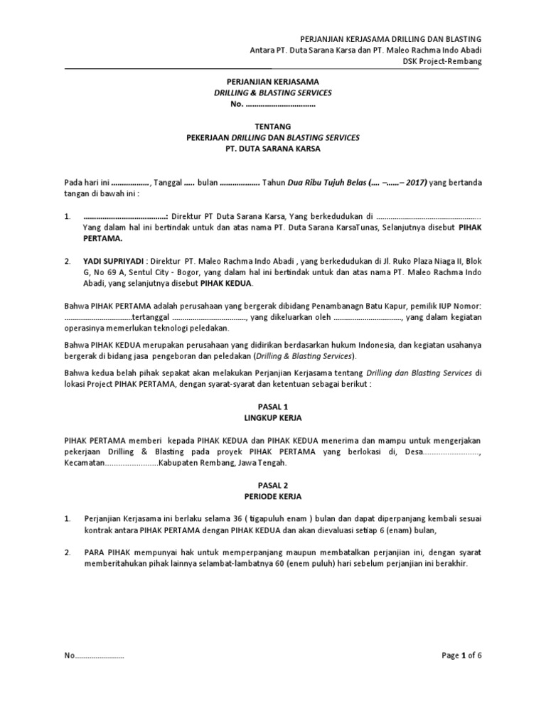 PERJANJIAN KERJASAMA DRILLING DAN BLASTING